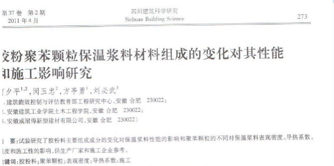 熱烈祝賀我公司總經(jīng)理劉必武所著論文《膠粉聚苯顆粒保溫漿料材料組成的變化對其性能和施工影響研究》榮登《四川建筑科學(xué)研究》。